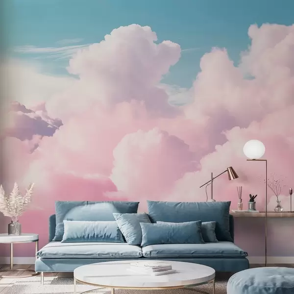 Fotomurales Suaves y vaporosas nubes rosadas en un cielo azul. Nr. w09569