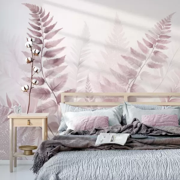 Fotomurales Hojas secas de helecho con textura en varios tonos de rosa, con un fondo suave y claro en estilo acuarela. Nr. w09615v2