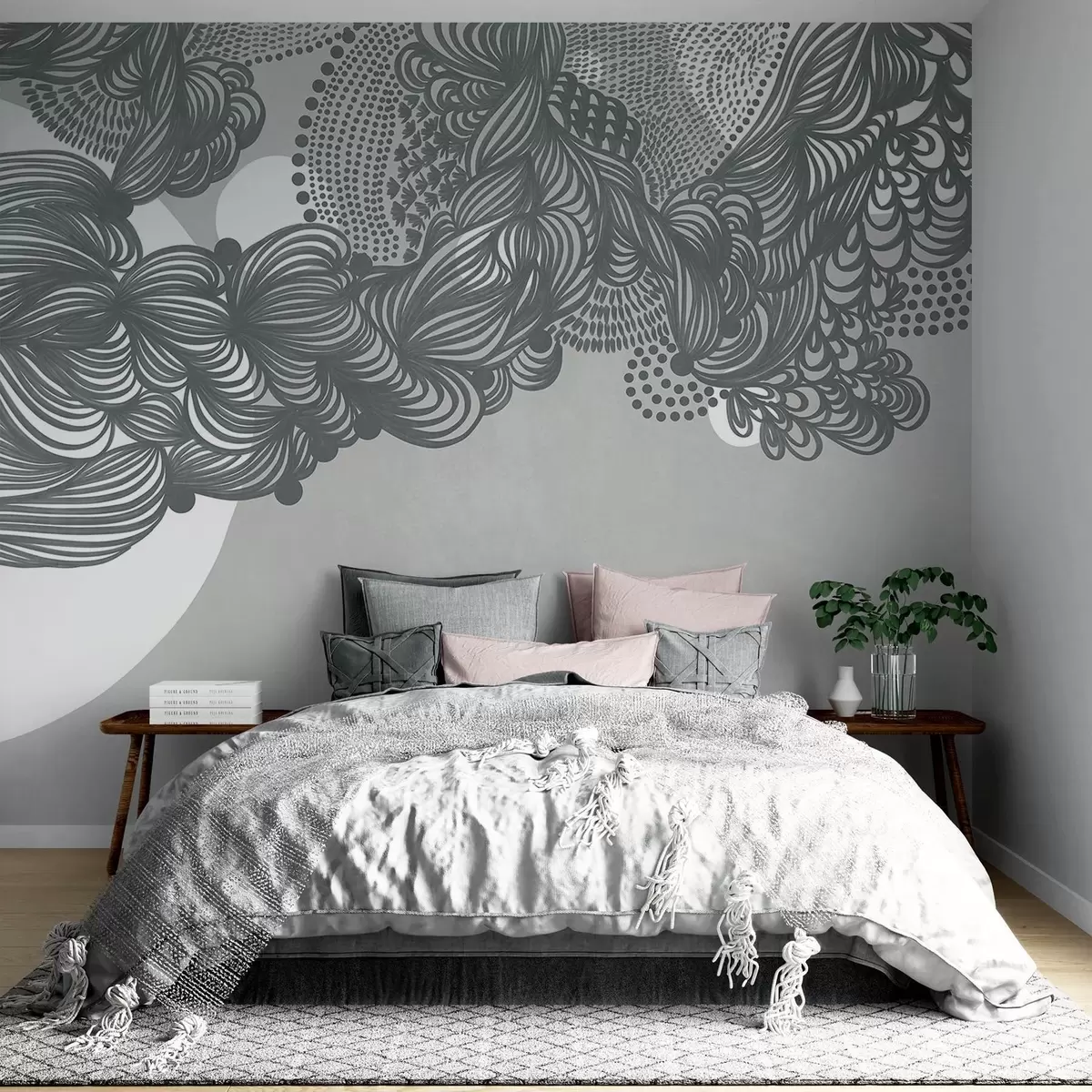 Fotomurales Diseño abstracto con textura sobre fondo gris, con líneas intrincadas y texturas punteadas. Nr. w09621v1