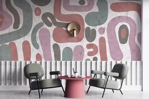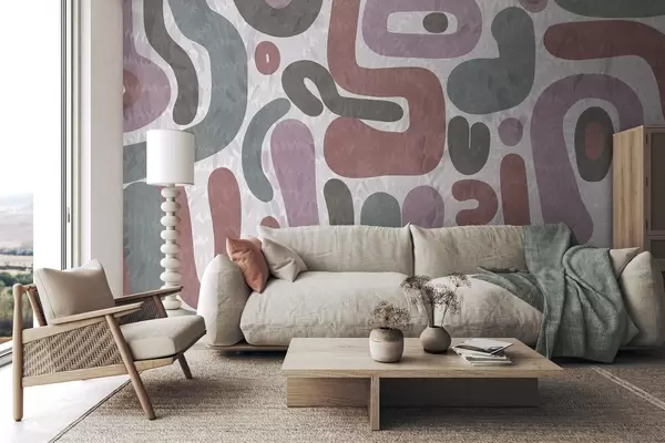 Fotomurales Formas abstractas con textura en tonos apagados de rosa, verde y gris, sobre un fondo con textura. Arte moderno. Nr. w09622