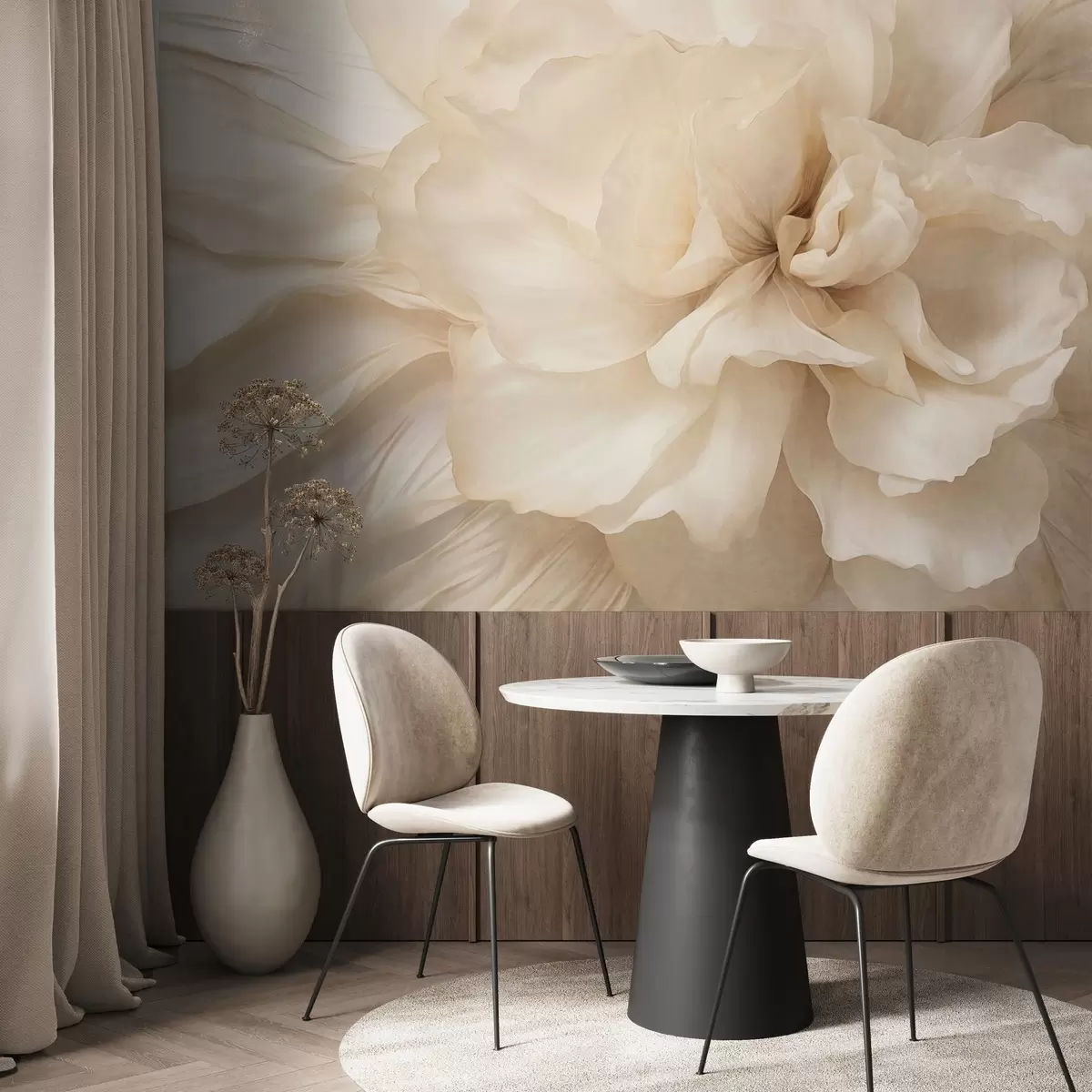Fotomurales Flor delicada y texturizada, de color claro, con pétalos translúcidos y un fondo abstracto suave. Nr. w09632