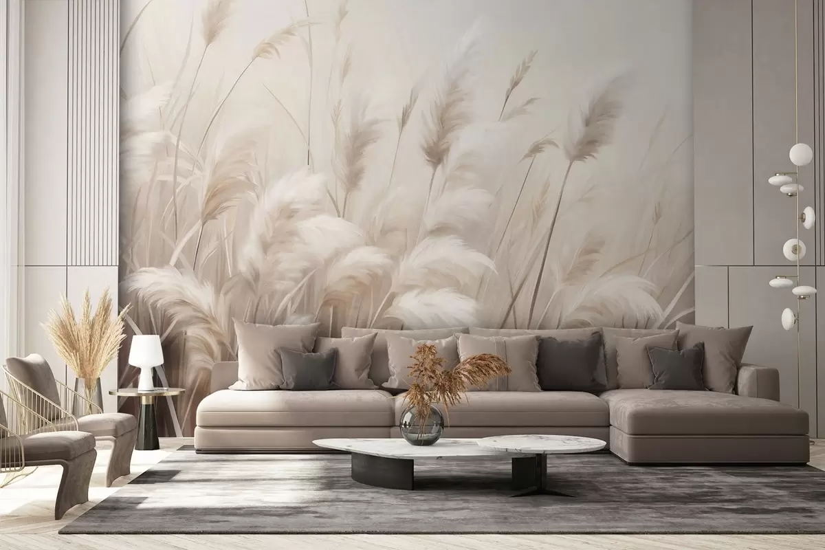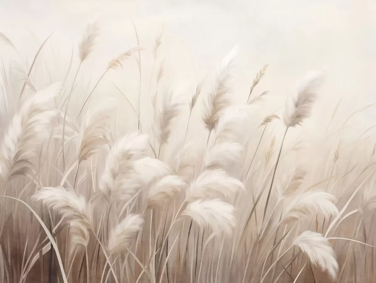 Fotomurales Hierba de la pampa alta y texturizada en tonos suaves, cálidos y neutros, con un fondo difuminado y claro. Nr. w09637