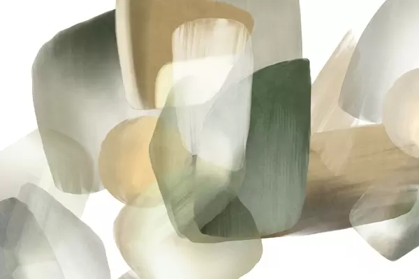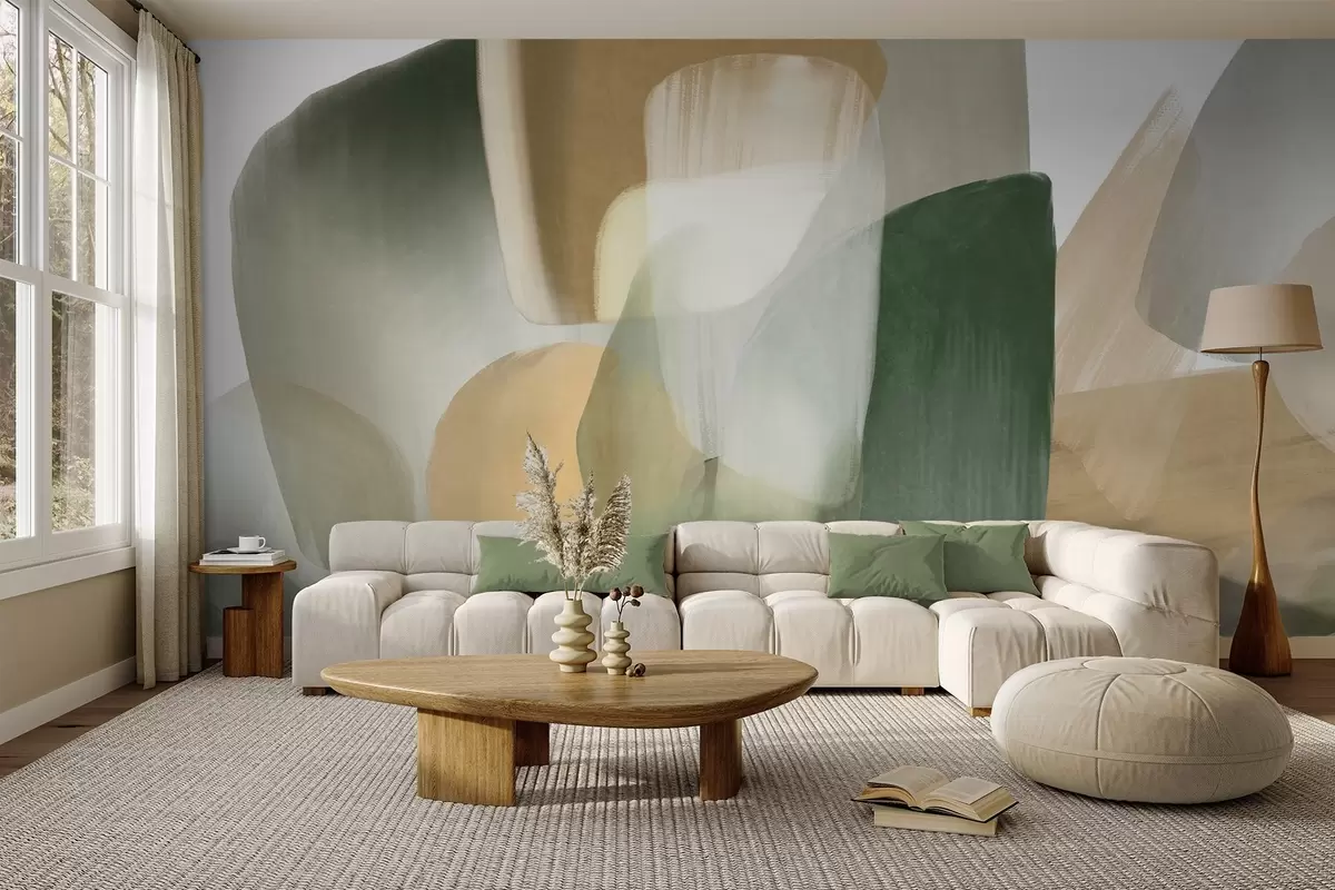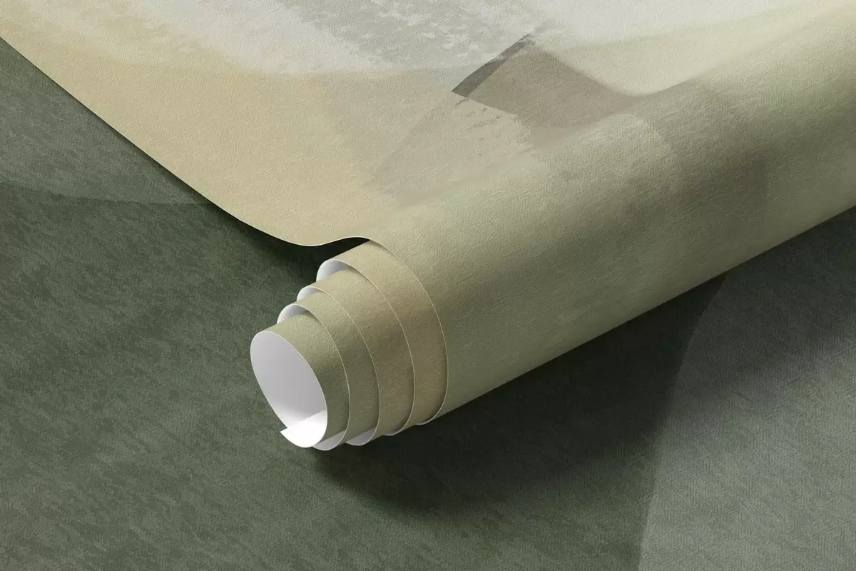 Fotomurales Formas abstractas con textura en colores verde y beige apagados, con bordes suaves y capas superpuestas. Nr. w09642