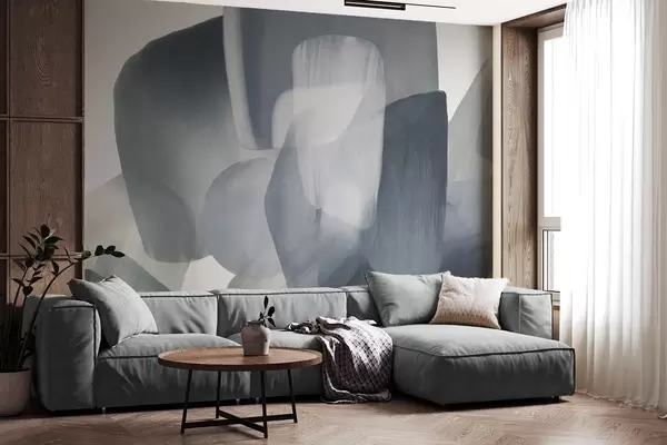Fotomurales Formas abstractas con textura en colores azul y gris apagados, con bordes suaves y capas superpuestas. Nr. w09642v1