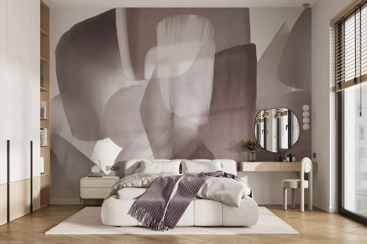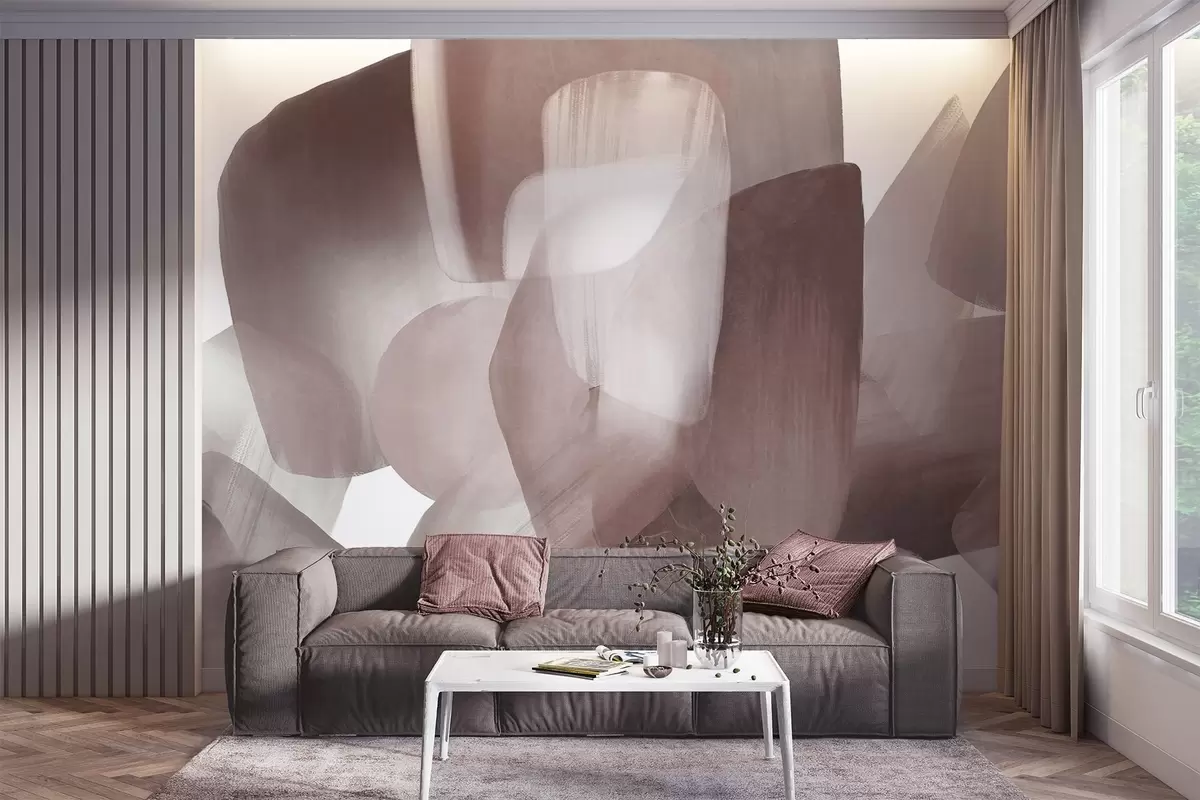 Fotomurales Formas abstractas con textura en colores burdeos y gris apagados, con bordes suaves y capas superpuestas. Nr. w09642v2