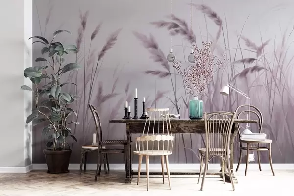Fotomurales Hierba seca alta y texturizada con espigas de trigo en el campo sobre un fondo suave y pálido. Nr. w09648v2