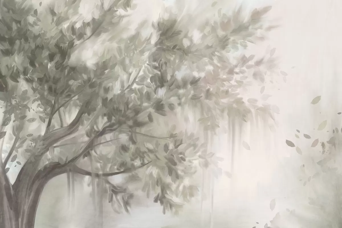 Fotomurales Árbol texturizado con hojas y ramas de color verde claro, con un fondo suave y difuminado. Nr. w09650