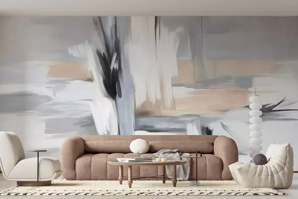 Fotomurales Estilo pictórico abstracto con textura y pinceladas en tonos blancos, grises y beiges. Nr. w09651