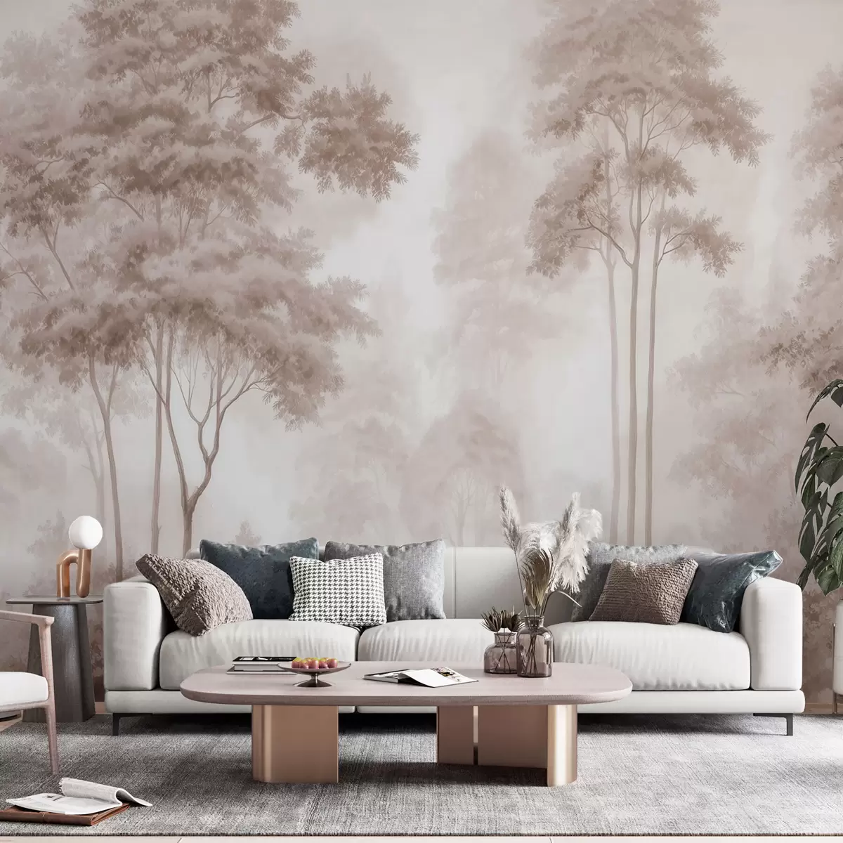 Fotomurales Paisaje forestal abstracto en tonos beige ahumados que transmite una sensación de profundidad Nr. w09657