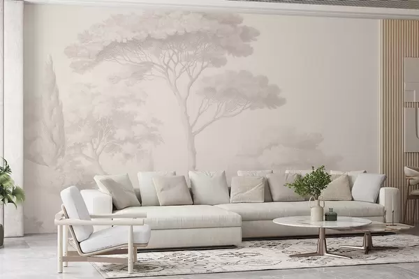 Fotomurales Tranquilo paisaje forestal en una paleta de colores beige. Nr. w09685