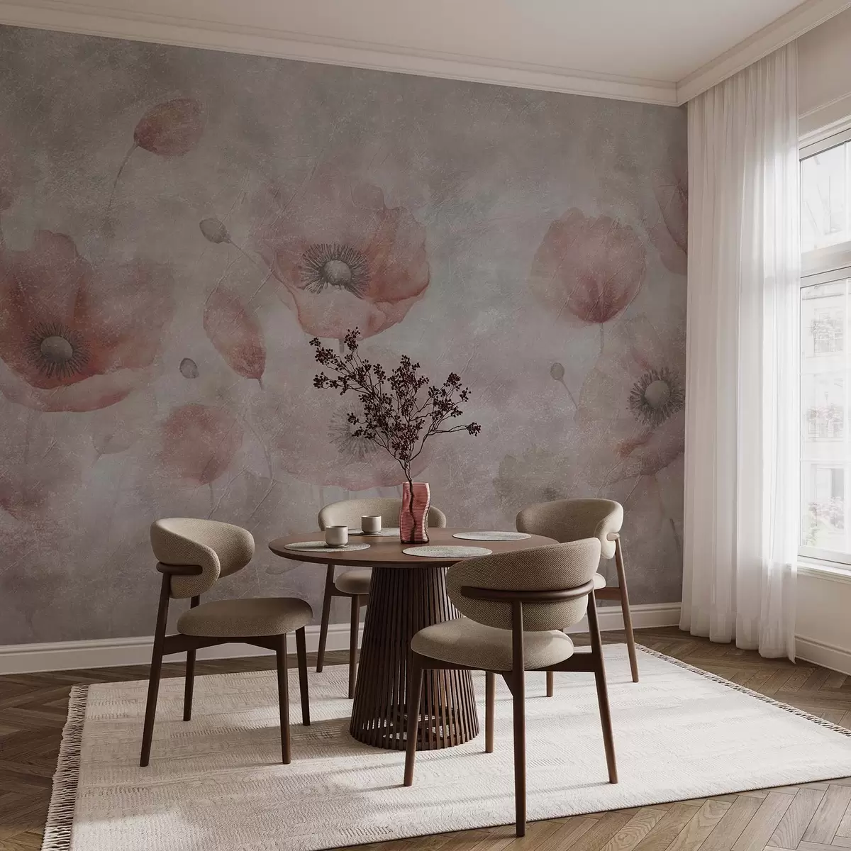 Fotomurales Grandes flores de amapola en una pared con efecto antiguo. Nr. w09686