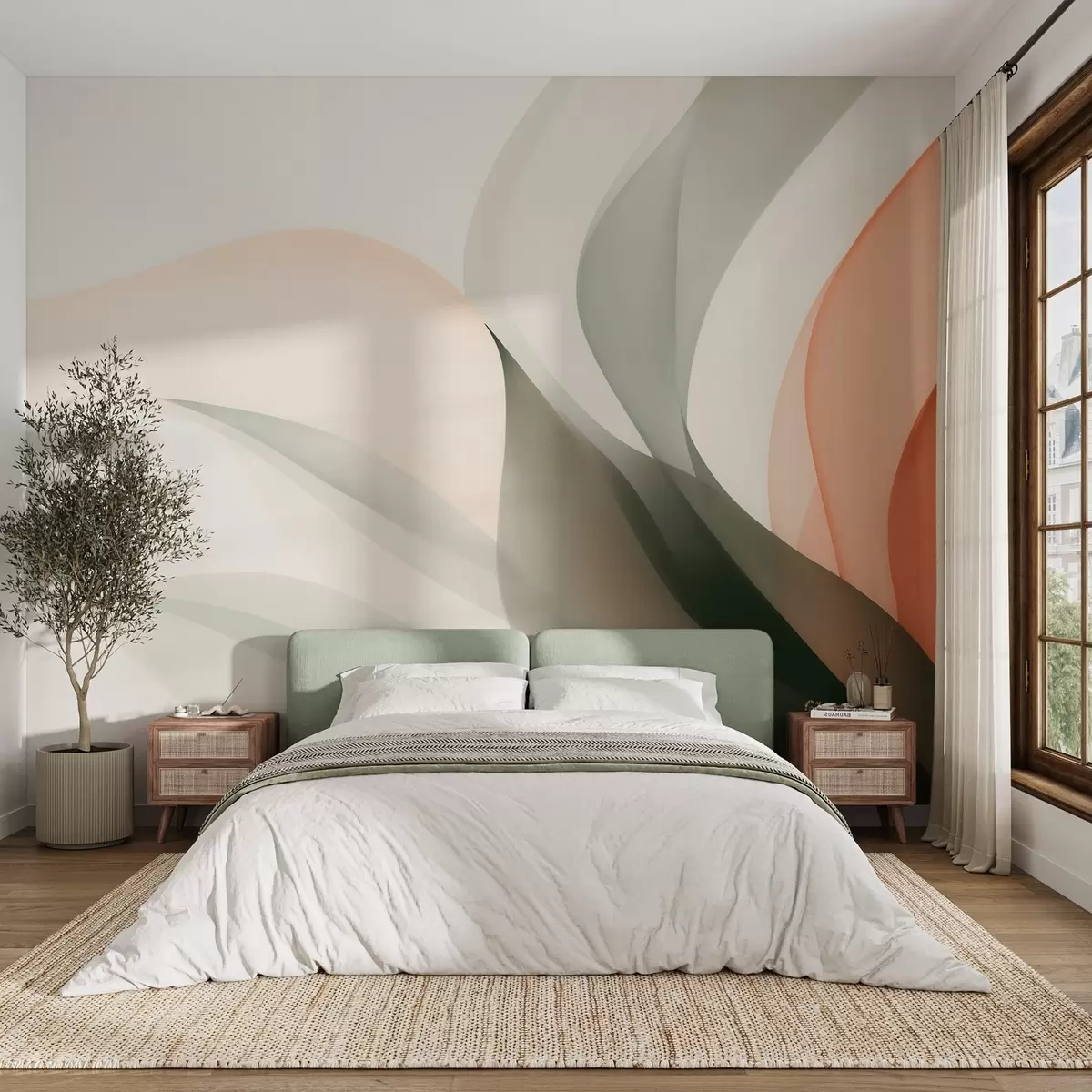 Fotomurales Olas abstractas en tonos naranjas y verdes. Nr. w09718