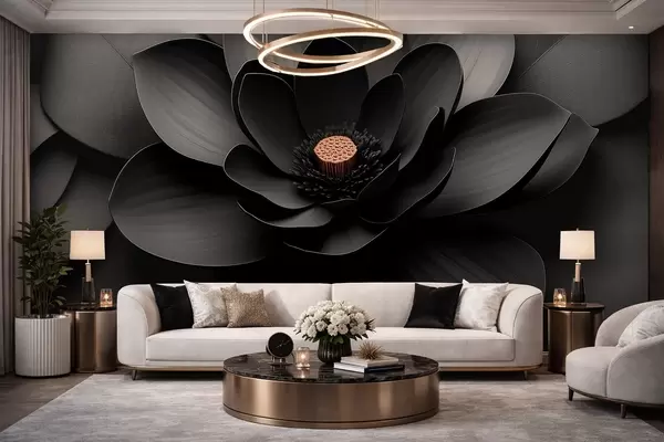 Fotomurales Flor negra minimalista con pétalos y un centro cálido que contrasta Nr. w09721