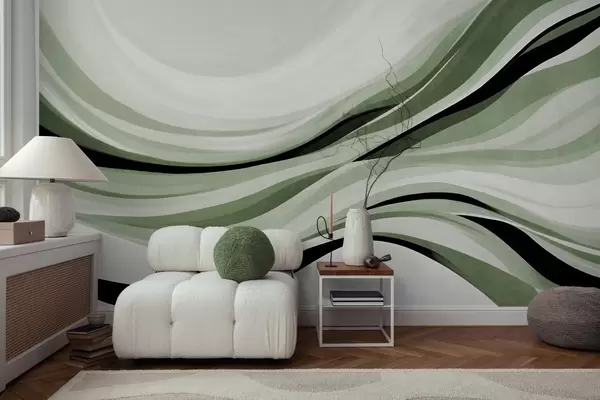 Fotomurales Líneas onduladas abstractas en tonos verdes y negros sobre un fondo claro, arte texturizado. Nr. w09748v1