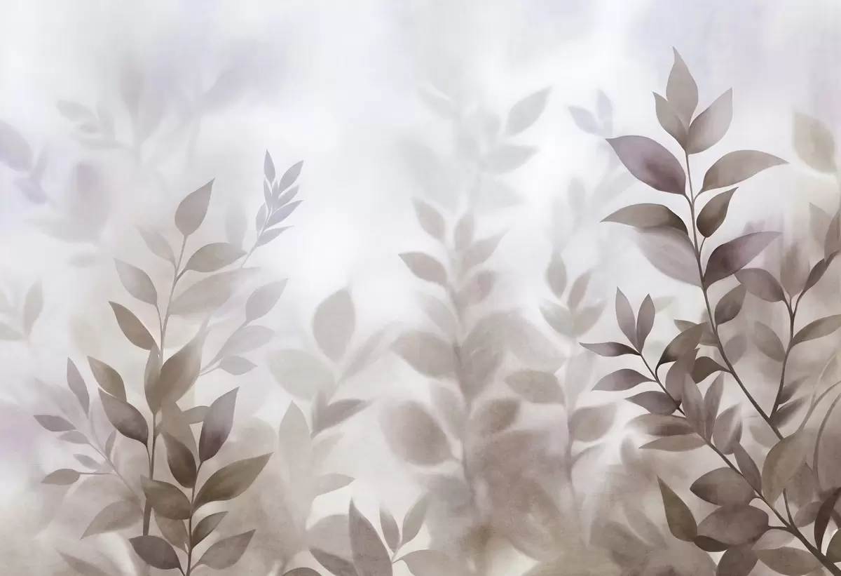 Fotomurales Ramas delicadas con hojas de tonos marrones y beiges apagados, estilo acuarela, arte con textura. Nr. w09750