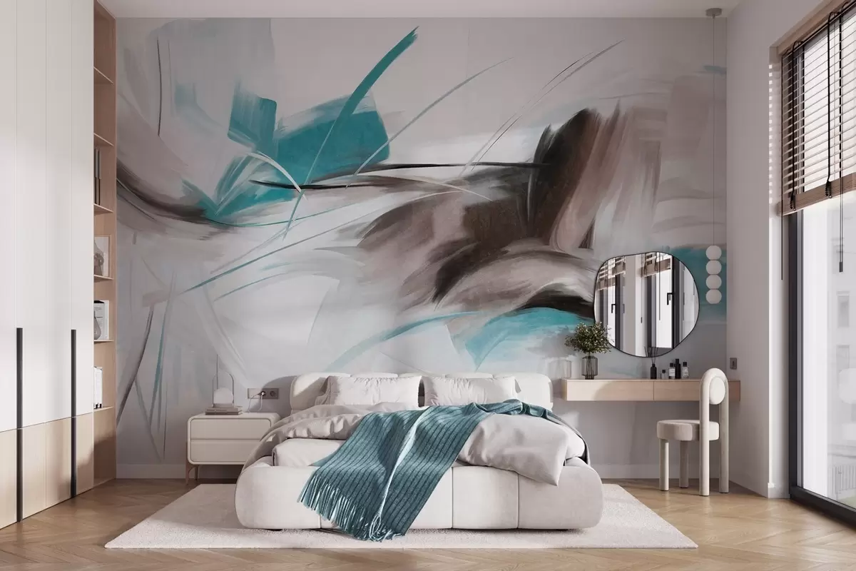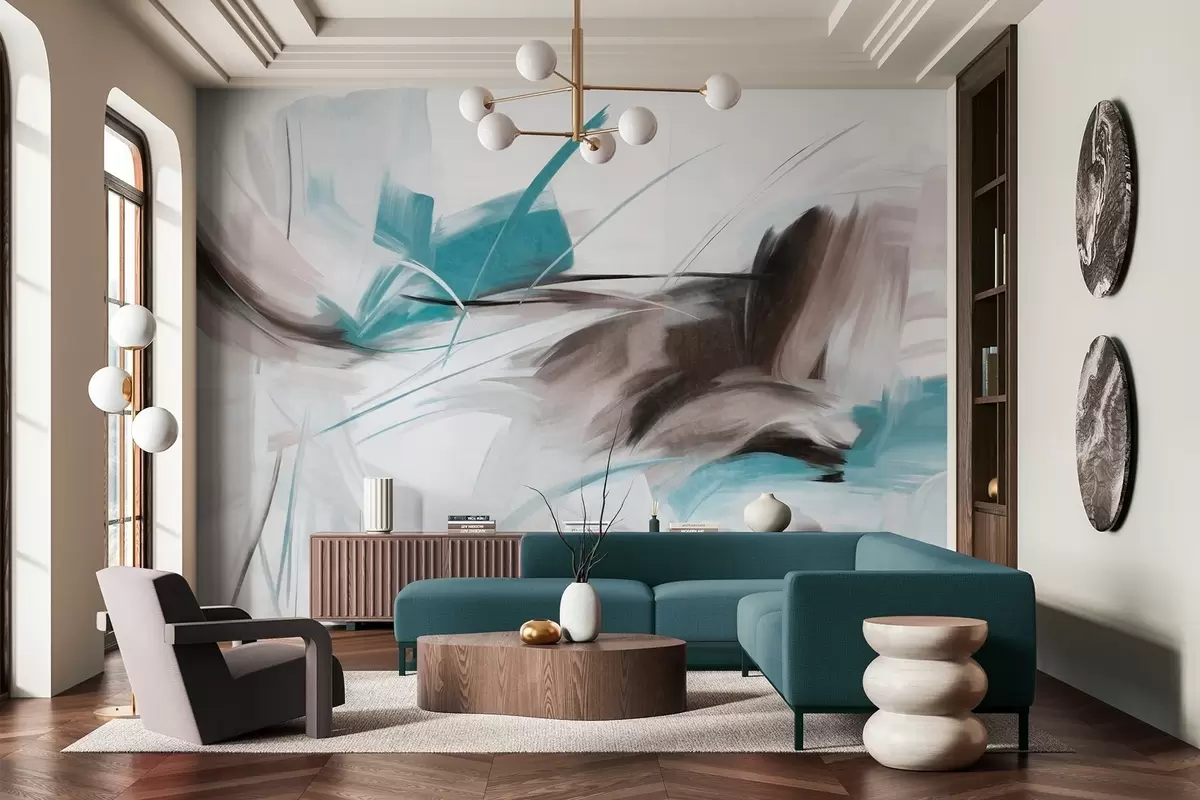 Fotomurales Estilo de pintura abstracta con pinceladas texturizadas en marrón y azul. Nr. w09755v1
