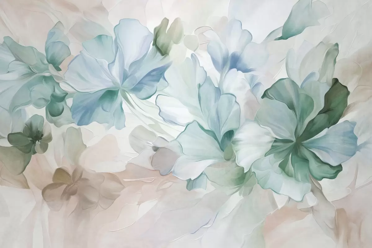 Fotomurales Flores abstractas de fantasía en tonos verdes, azules y beige, con un estilo pictórico y texturizado Nr. w09767v1