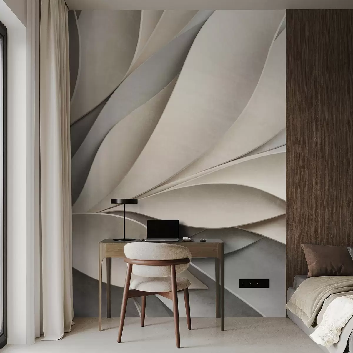 Fotomurales Hojas abstractas en beige y gris, arte moderno con textura. Nr. w09769