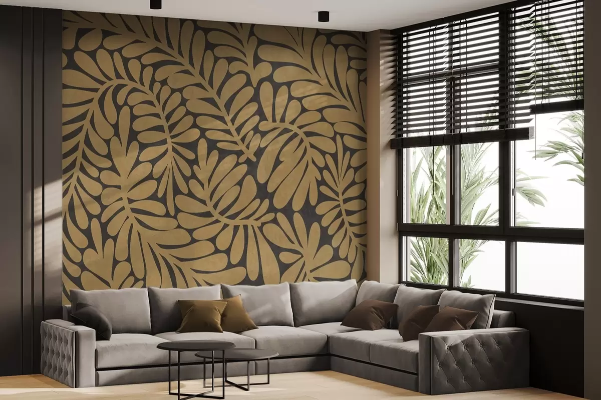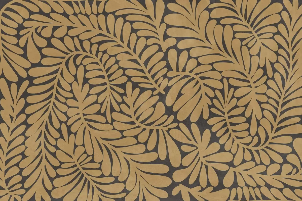 Fotomurales Hojas de color amarillo mostaza estilizadas sobre un fondo gris oscuro, obra de arte con textura Nr. w09775