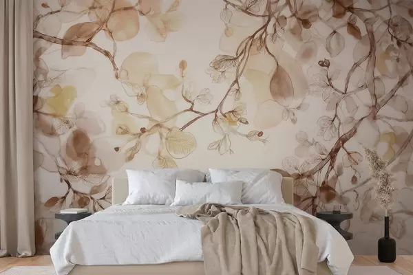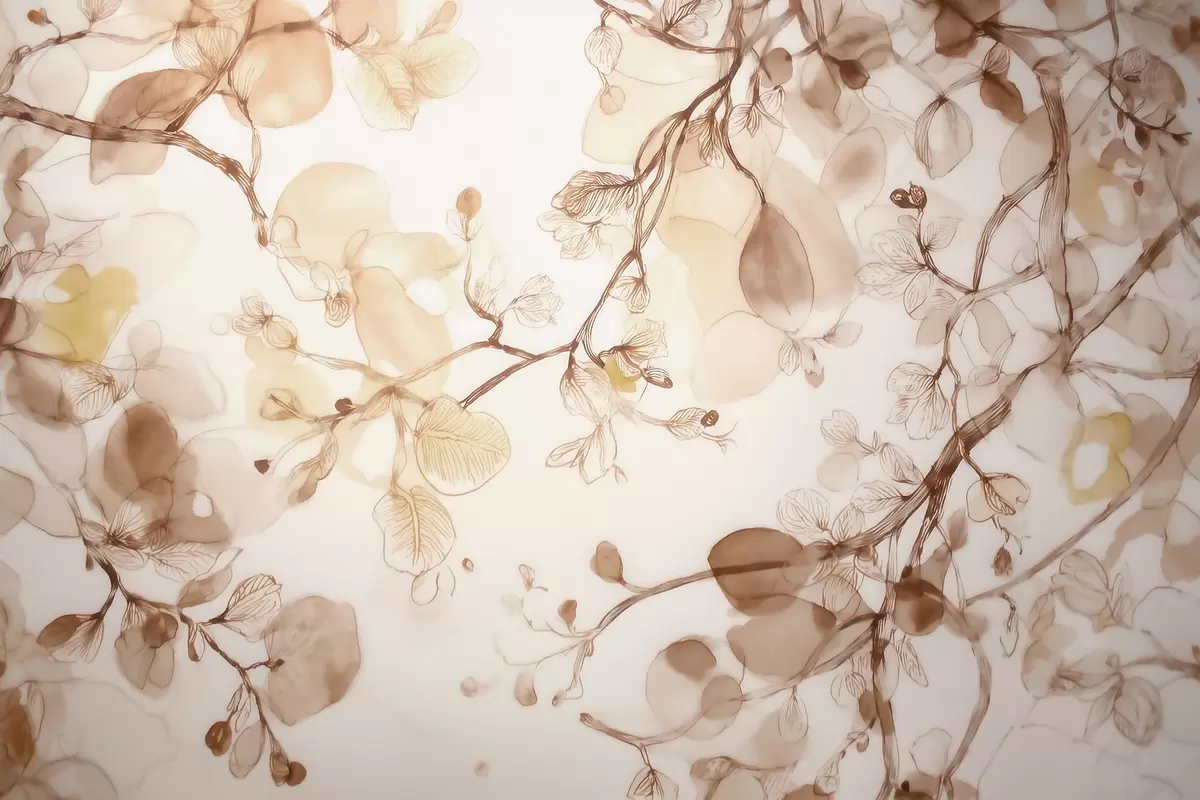 Fotomurales Ramas etéreas que cuelgan en tonos beige, en estilo acuarela Nr. w09795