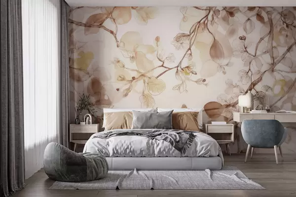 Fotomurales Ramas etéreas que cuelgan en tonos beige, en estilo acuarela Nr. w09795