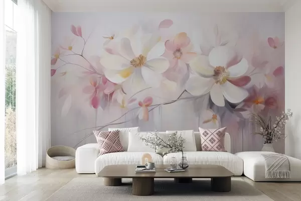 Fotomurales Arte texturizado con flores blancas y rosas de pétalos delicados, fondo abstracto y suave Nr. w09811
