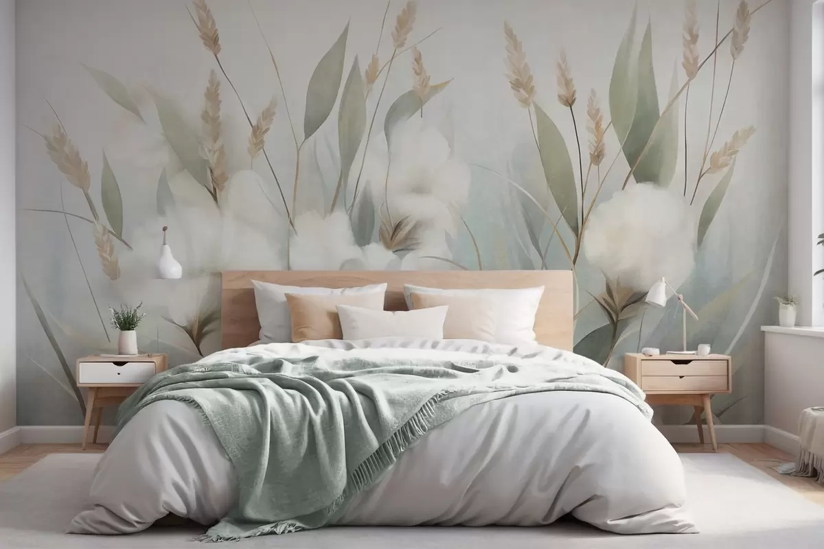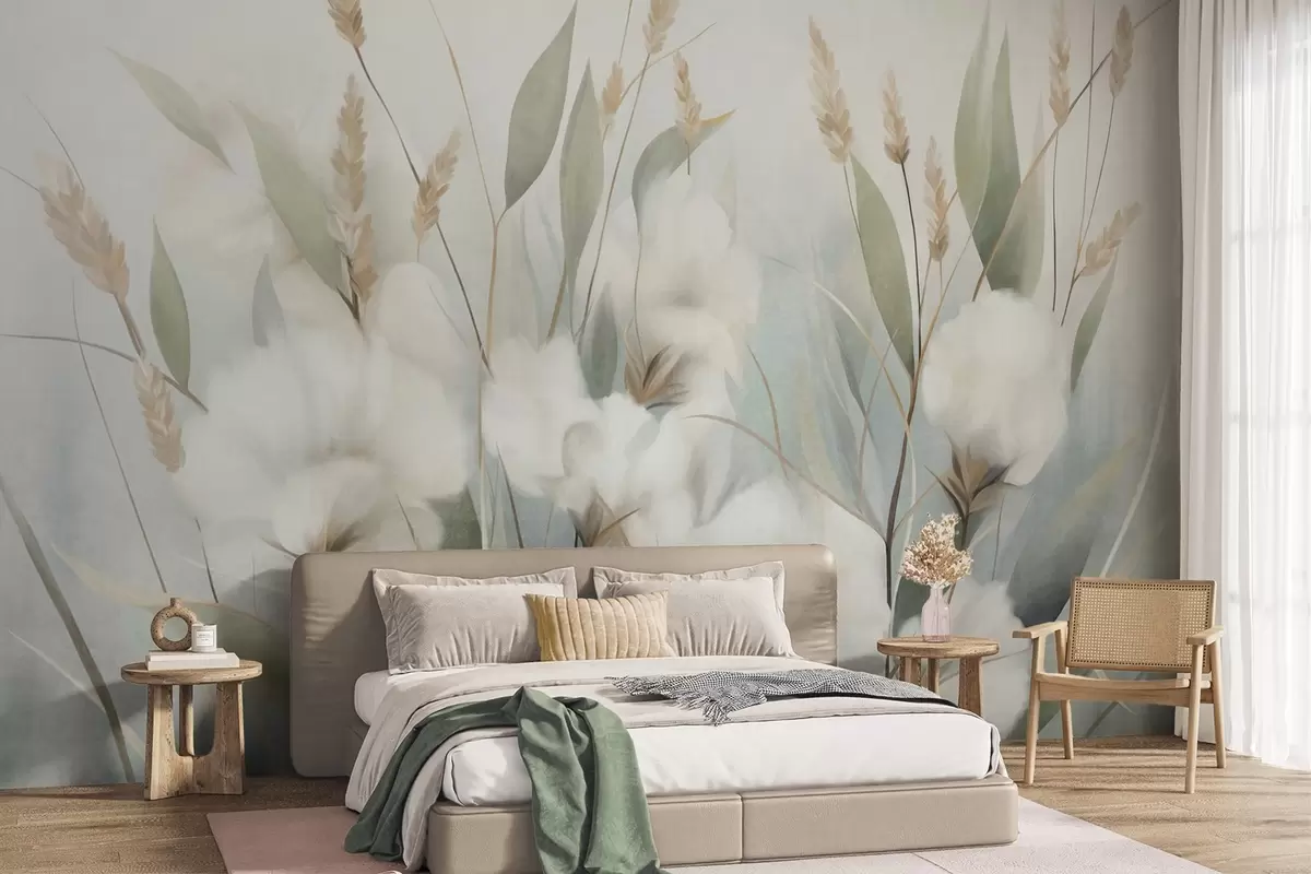 Fotomurales Flores secas blancas y hierba alta sobre un fondo suave y tenue, pintadas en estilo impresionista Nr. w09823