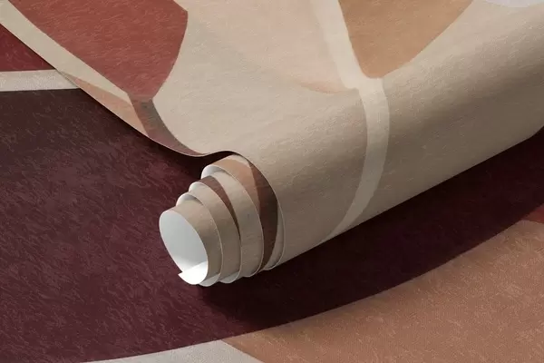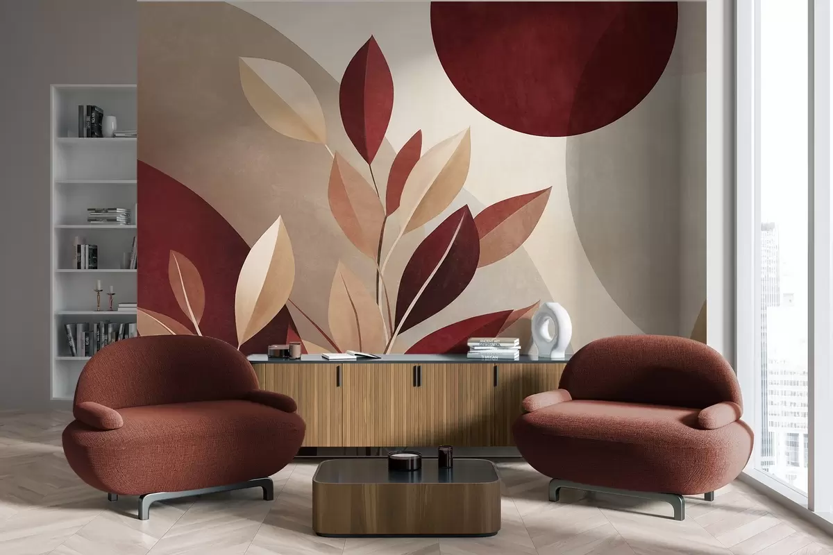 Fotomurales Hojas con textura en tonos burdeos y beige sobre un fondo de formas abstractas, minimalismo y arte moderno Nr. w09829