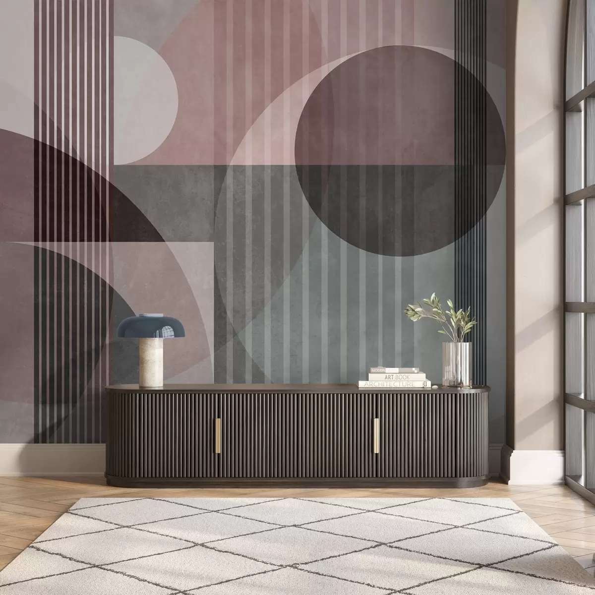 Fotomurales Formas geométricas abstractas con círculos y líneas, tonos apagados, textura y composición en capas Nr. w09834v1