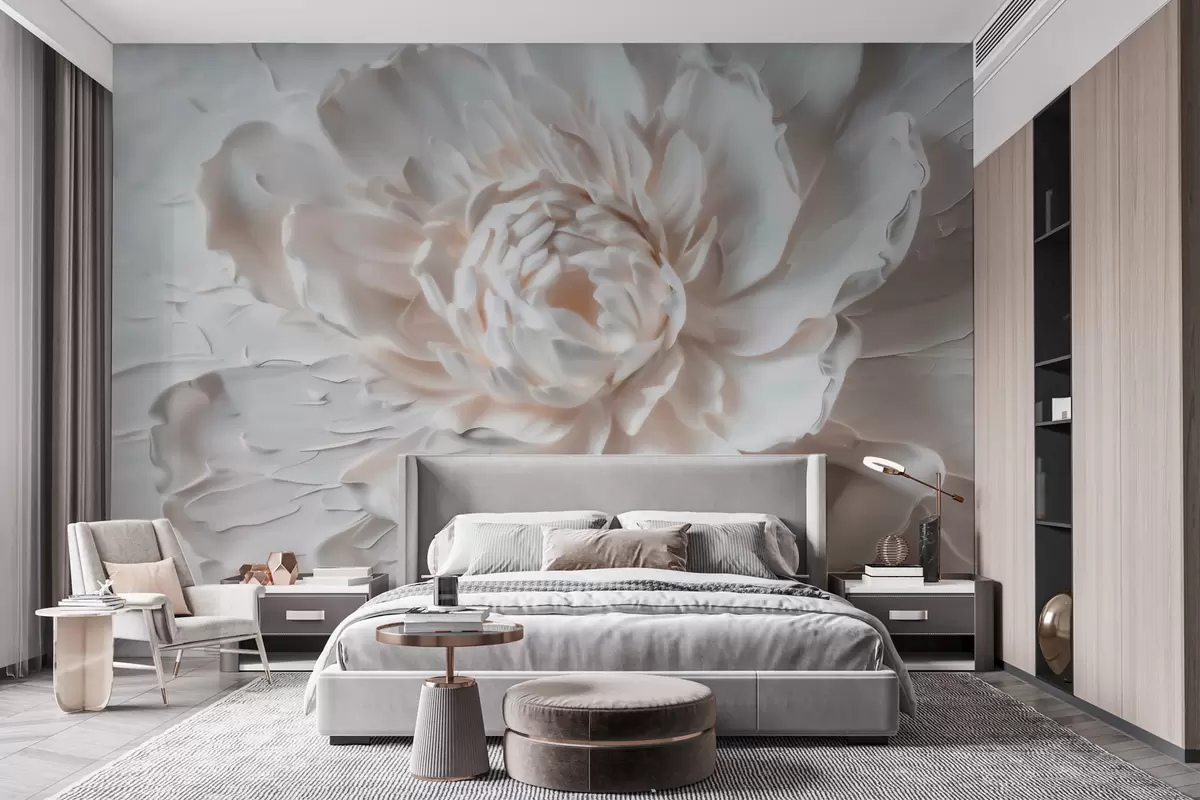 Fotomurales Una delicada flor en bajorrelieve con pétalos lisos en tonos claros Nr. w09861