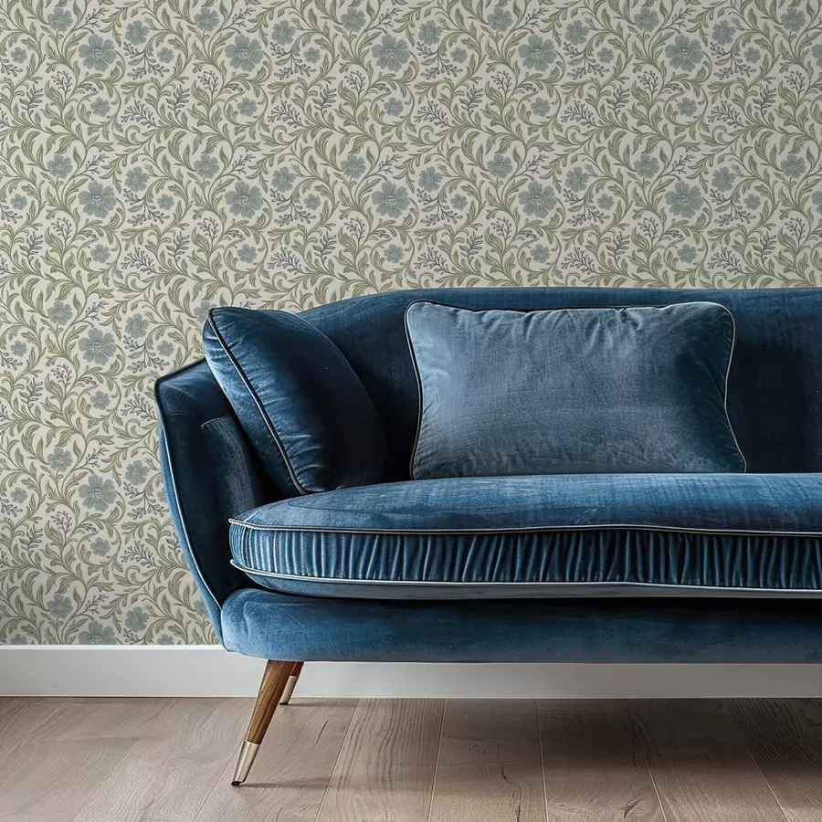 Volutas de acanto con flores en tonos verdes y amarillos