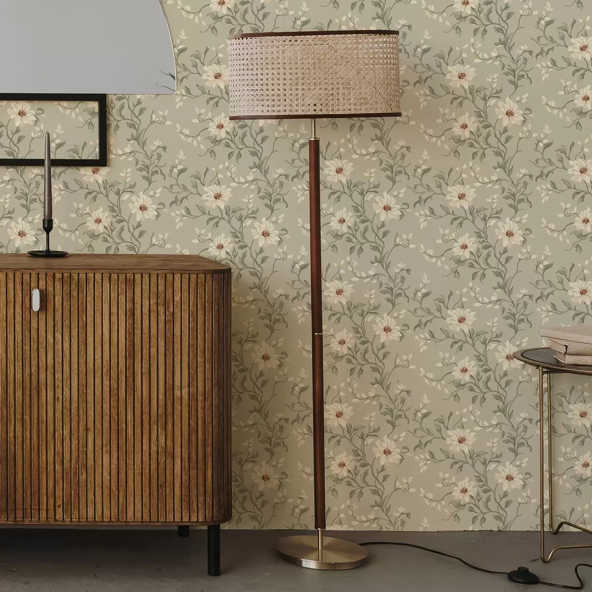 Papel tapiz Flores blancas con hojas que se retuercen sobre fondo claro Nr. a00001v1
