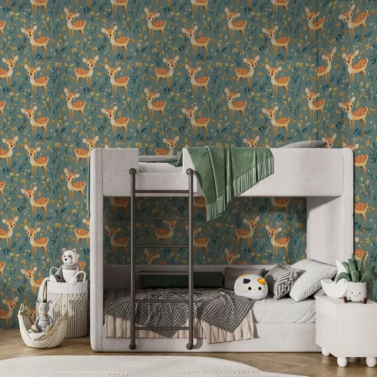 Papel tapiz Cría de ciervo en el bosque con hojas amarillas Nr. a00124v1