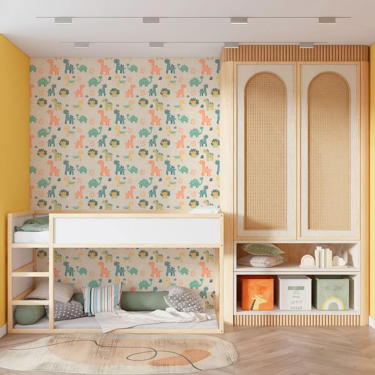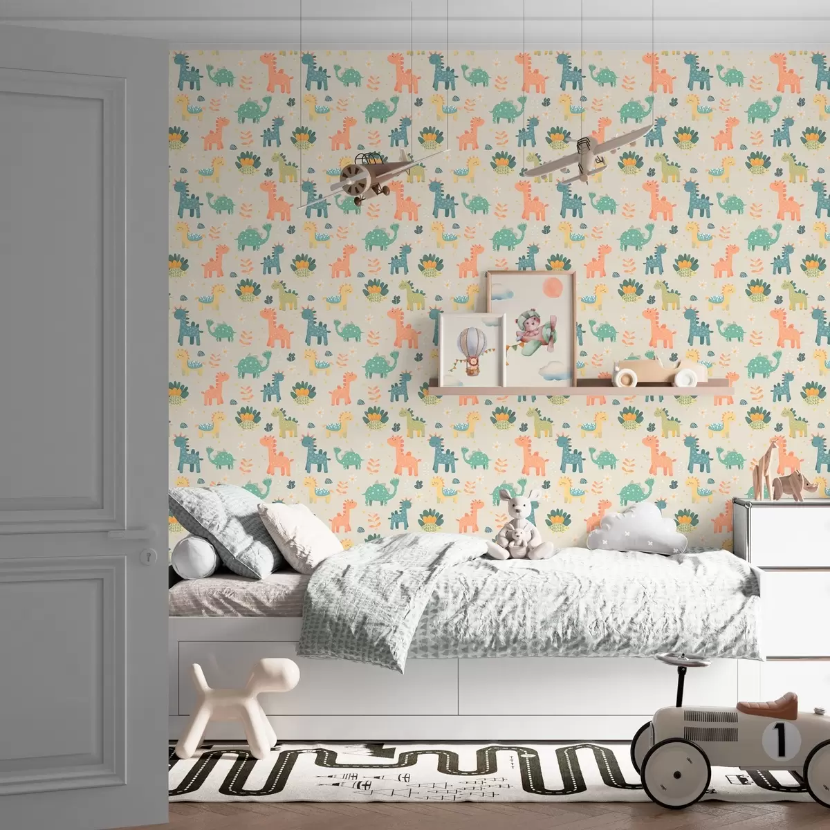 Papel tapiz Dinosaurios infantiles en colores pastel sobre fondo claro Nr. a00125