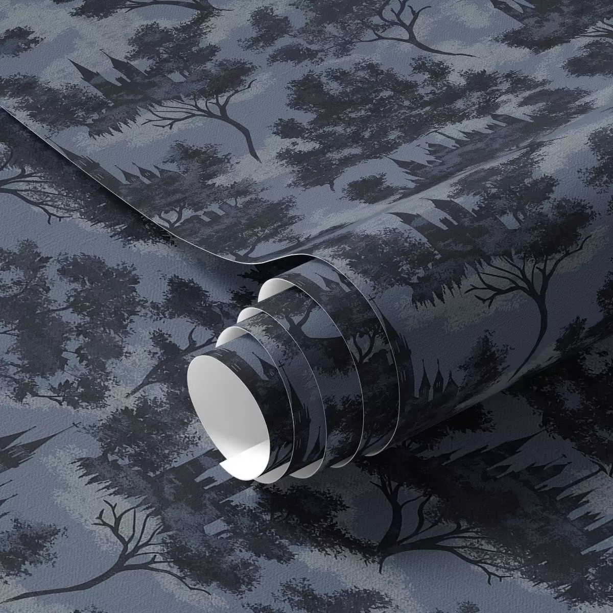 Papel tapiz Castillos góticos entre los árboles del bosque nocturno Nr. a00130v1