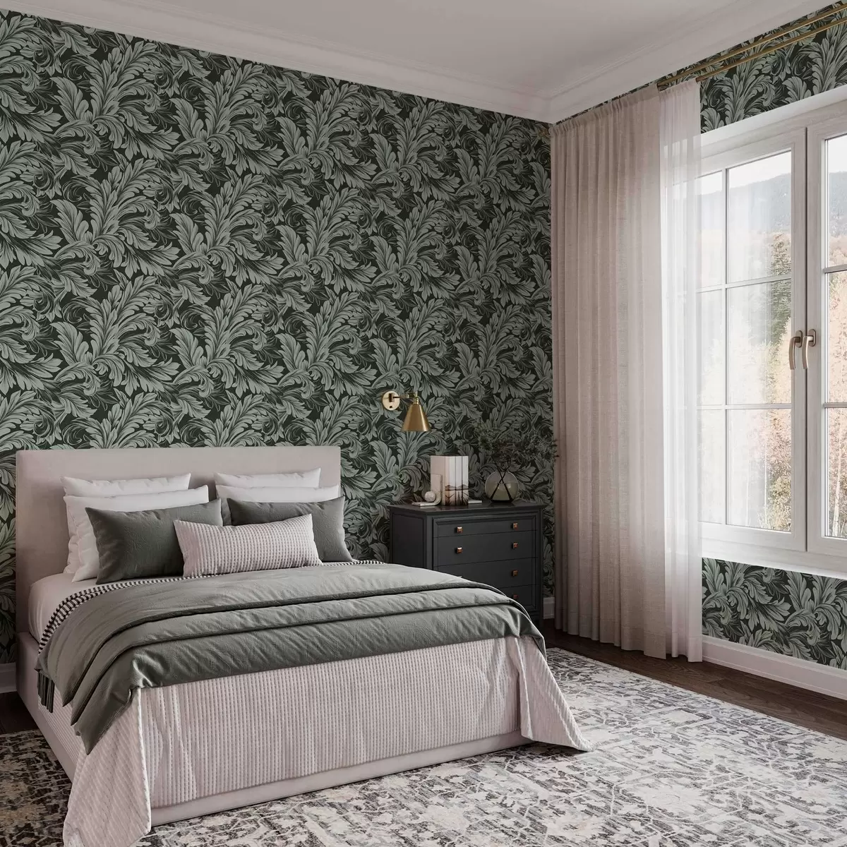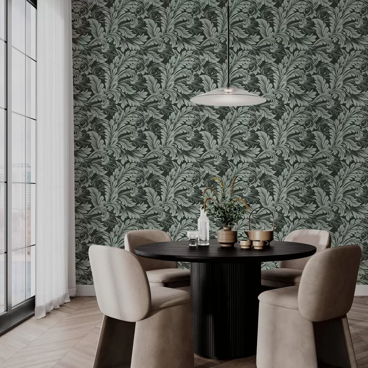 Papel tapiz Fondo verde oscuro con rizos color menta Nr. a00135v4