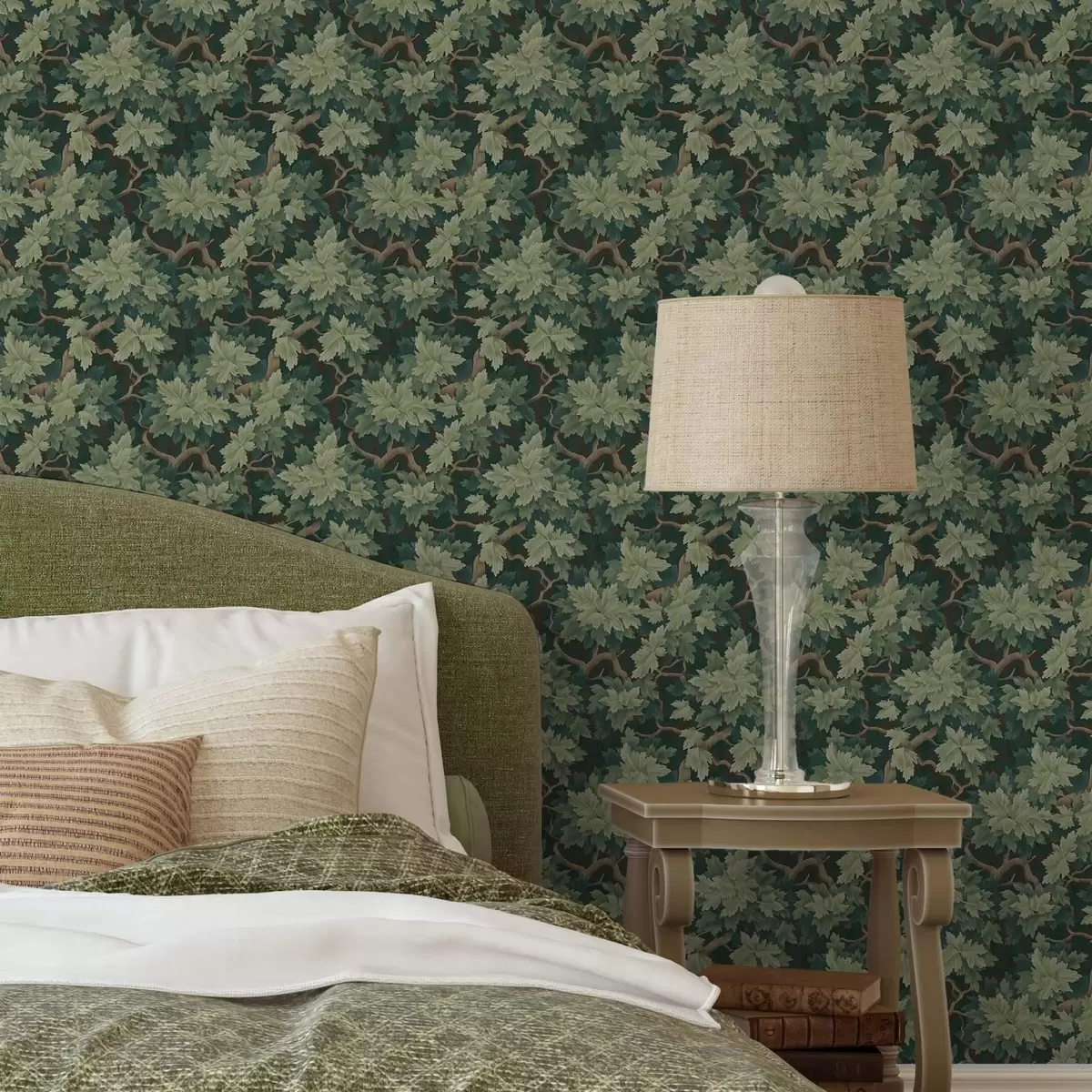 Papel tapiz Hojas de roble sobre fondo verde Nr. a00151