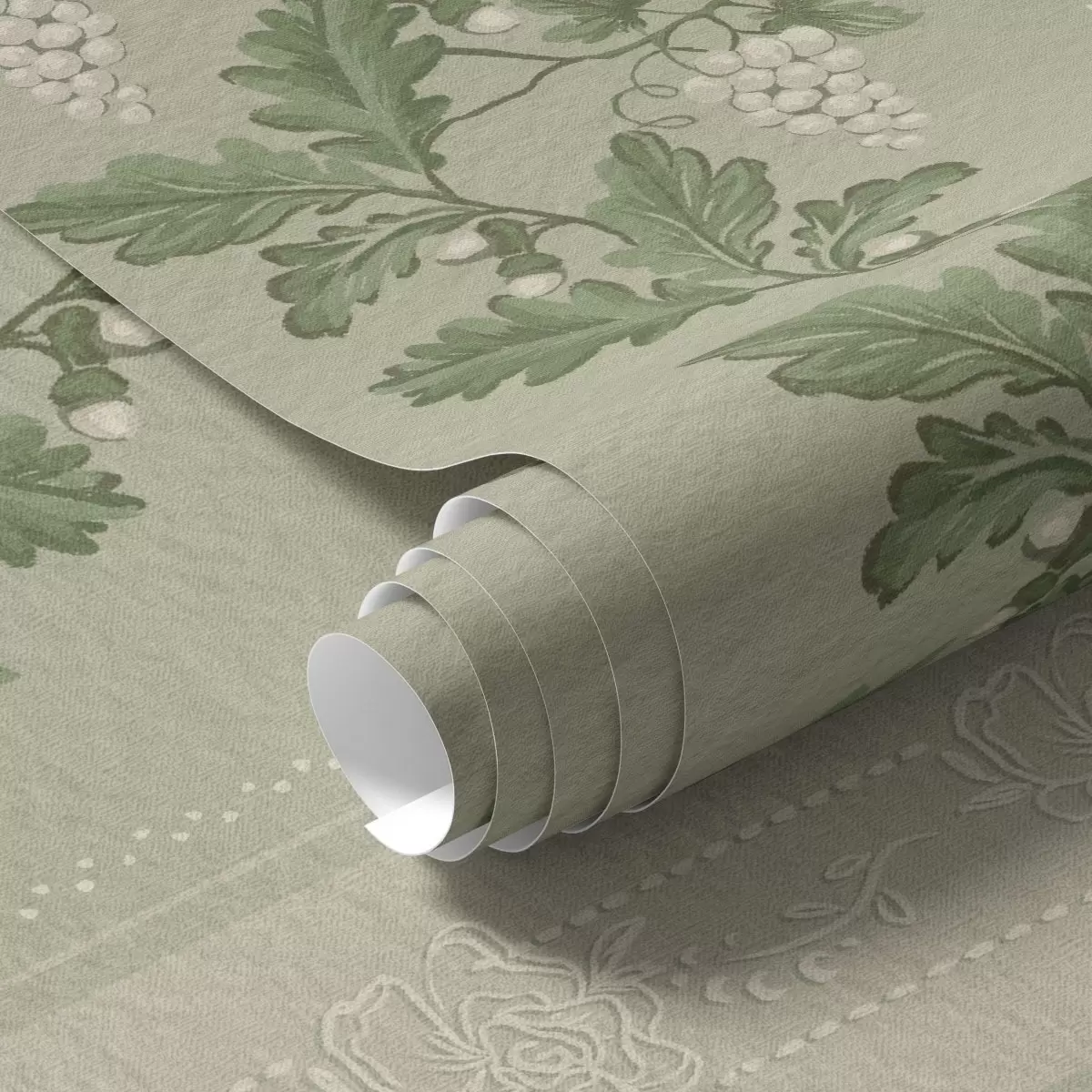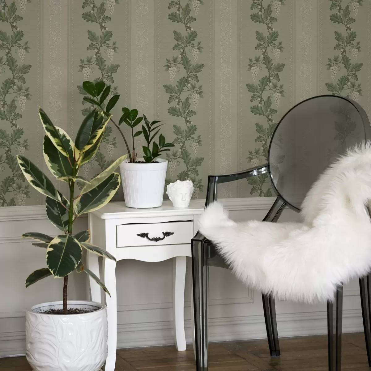 Papel tapiz Racimos de uvas y encaje, patrón clásico verde Nr. a00223