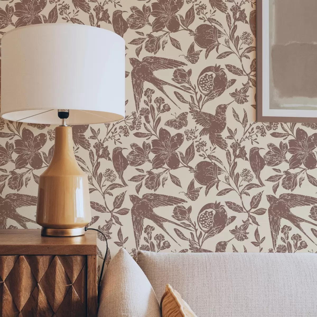Papel tapiz Pájaros, granadas y flores en estilo vintage Nr. a00263