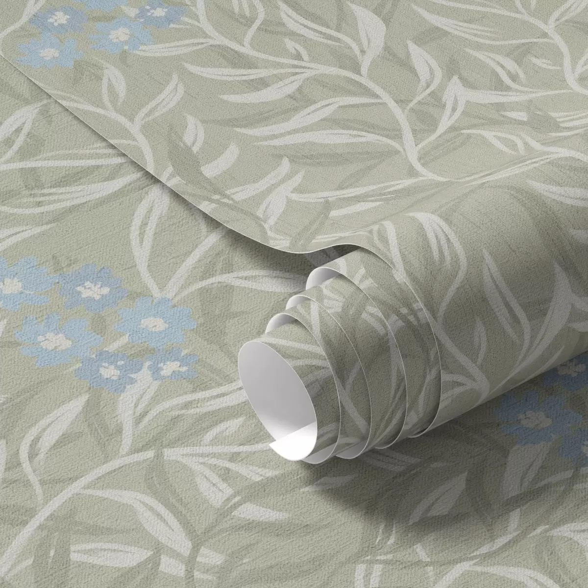 Papel tapiz Fondo verde con ramas blancas y flores azules Nr. a00268v1