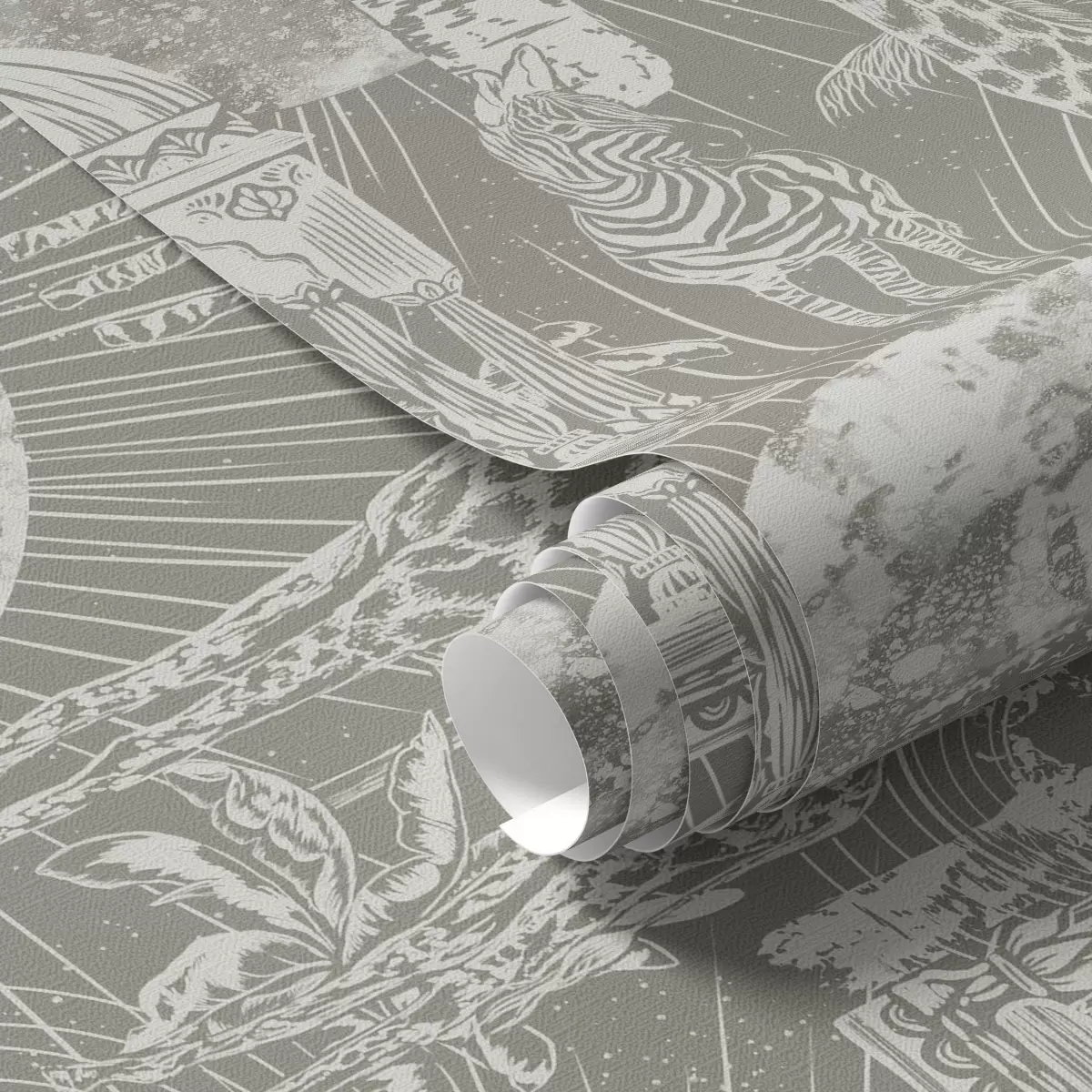 Papel tapiz Jirafa y cebra sobre un fondo de arquitectura y árboles tropicales Nr. a00276