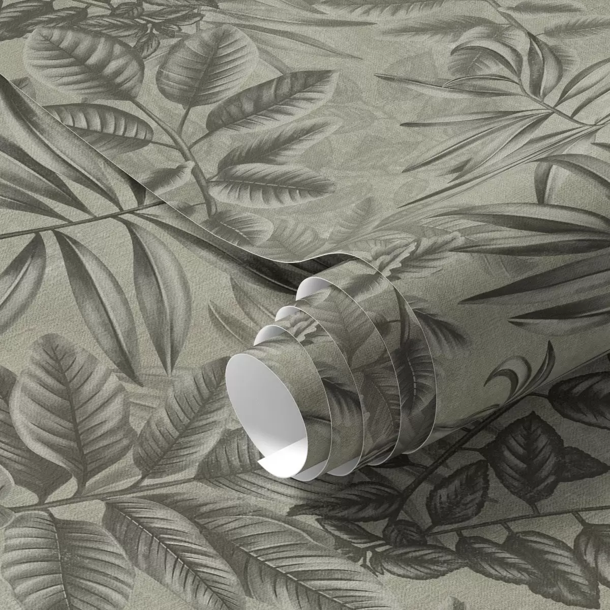 Papel tapiz Hojas tropicales grises de diversas formas sobre fondo vintage Nr. a00297