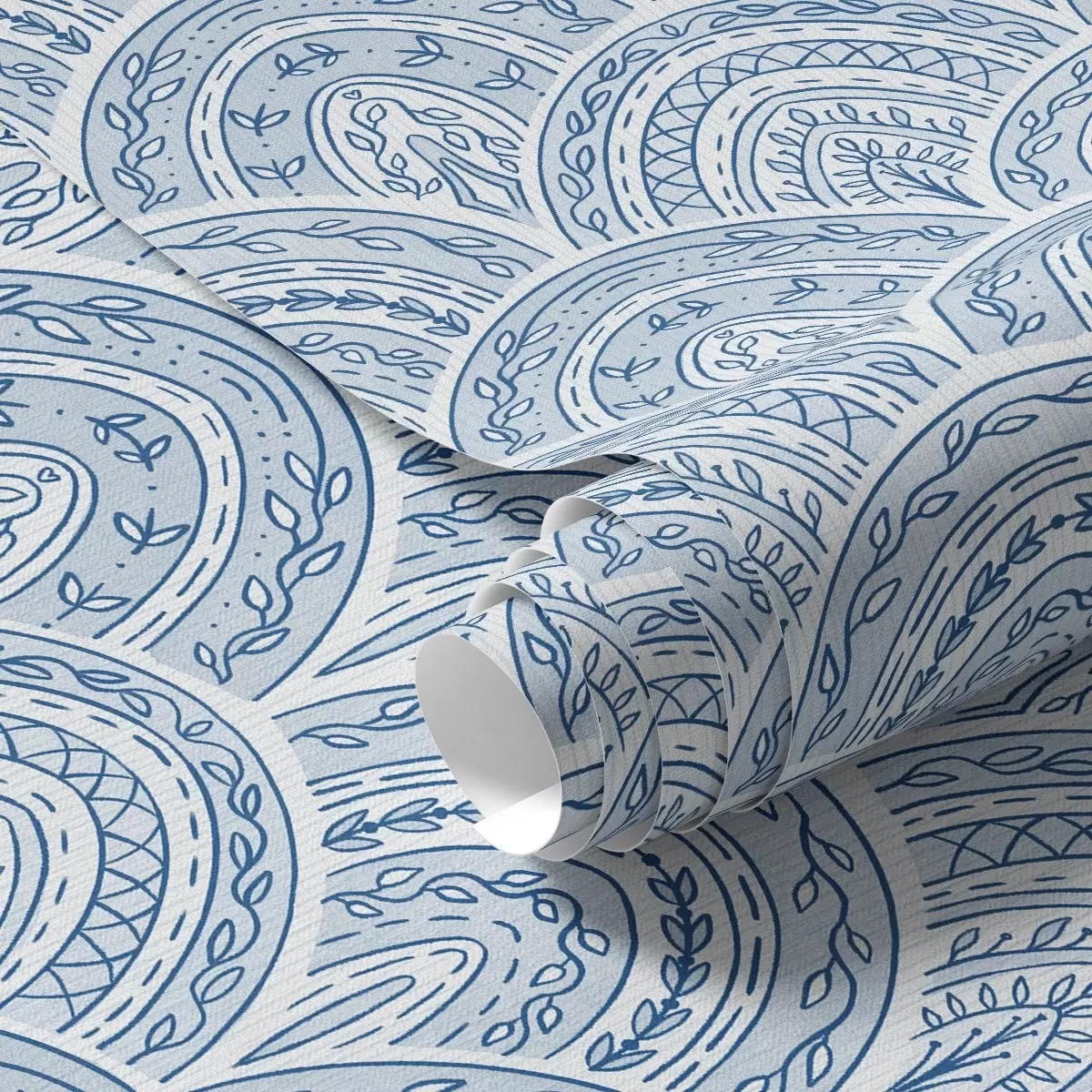 Papel tapiz Adorno azul con arcos y motivos Nr. a00332