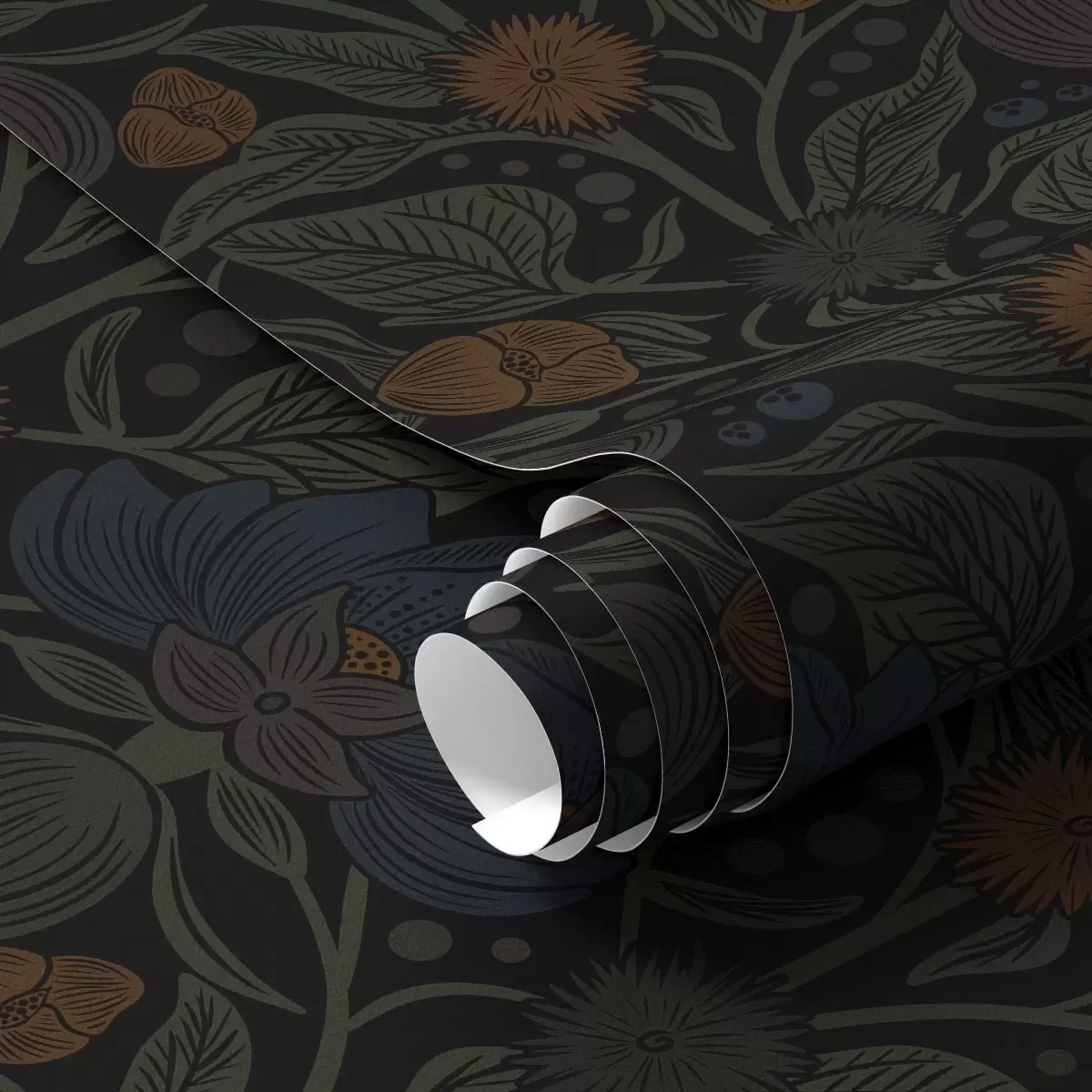 Papel tapiz Adorno floral oscuro con detalles naranjas Nr. a00411