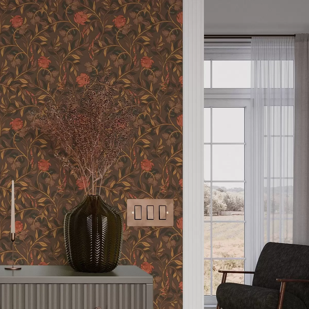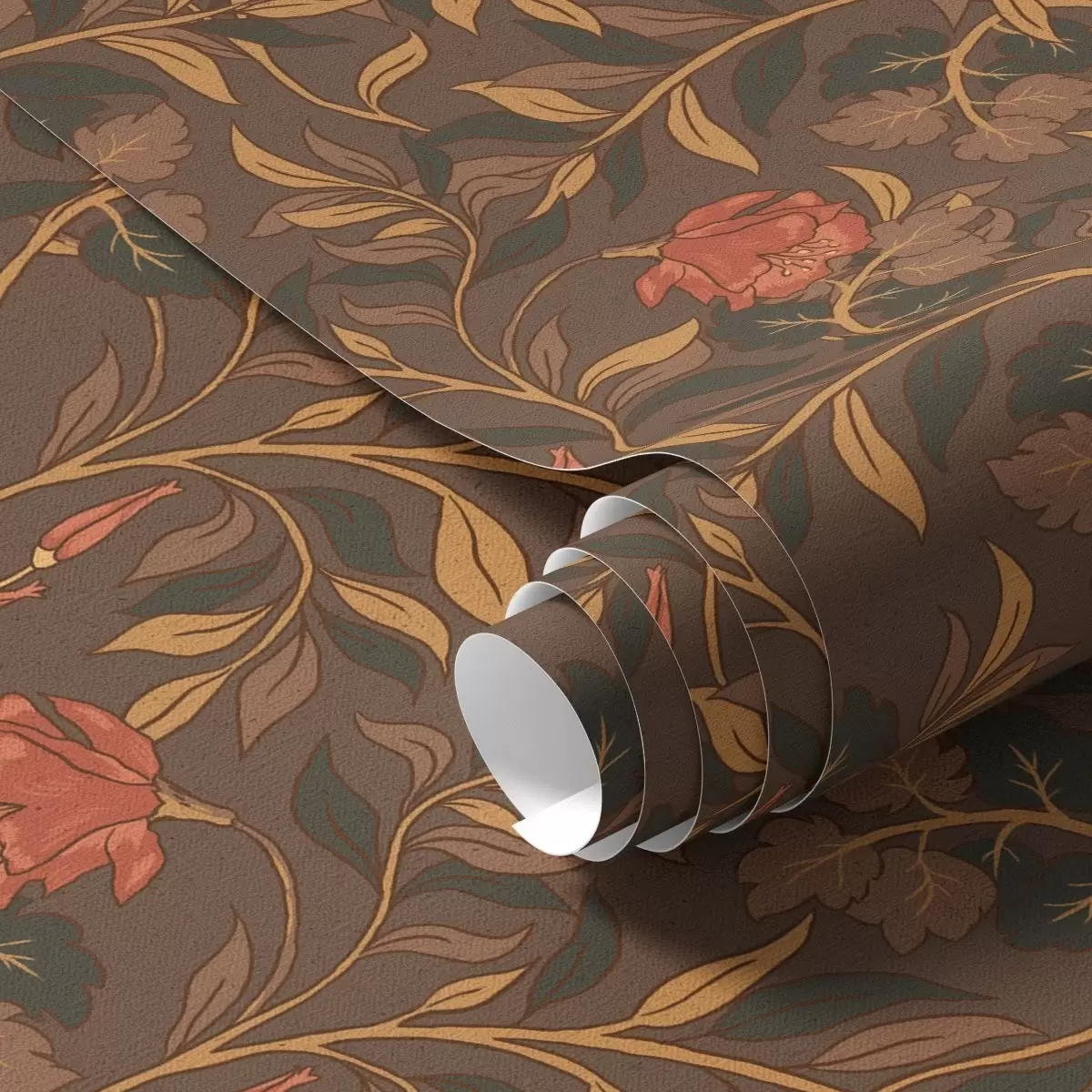 Papel tapiz Ramas de terracota en flor sobre fondo marrón Nr. a00460