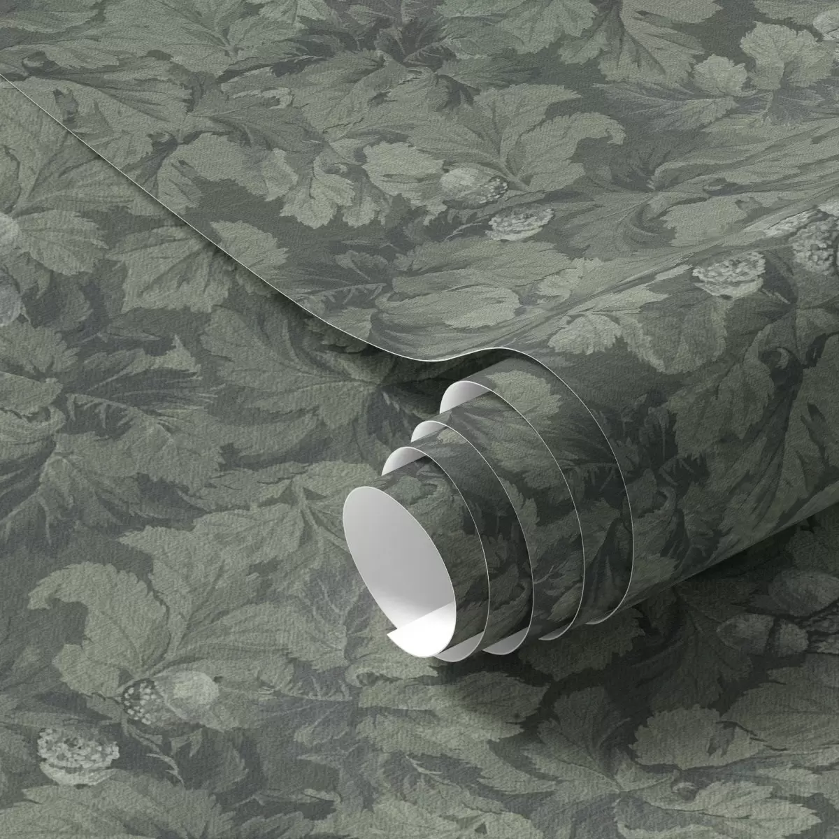 Papel tapiz Textura oscura de hojas con bellotas en verde intenso Nr. a00461