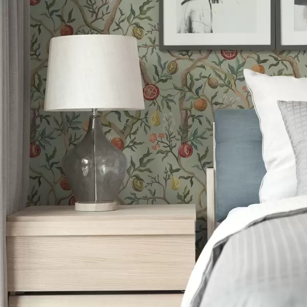 Papel tapiz Granadas, peras y flores sobre fondo verde pálido Nr. a00465
