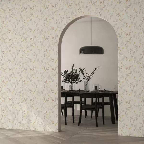 Papel tapiz Flores de campo y gallinas en suaves tonos pastel Nr. a00478