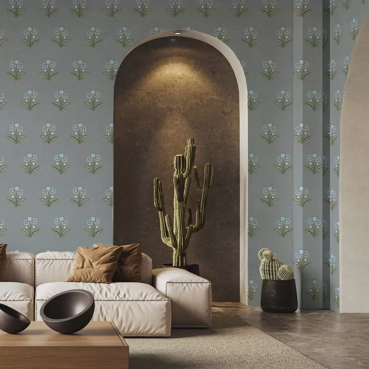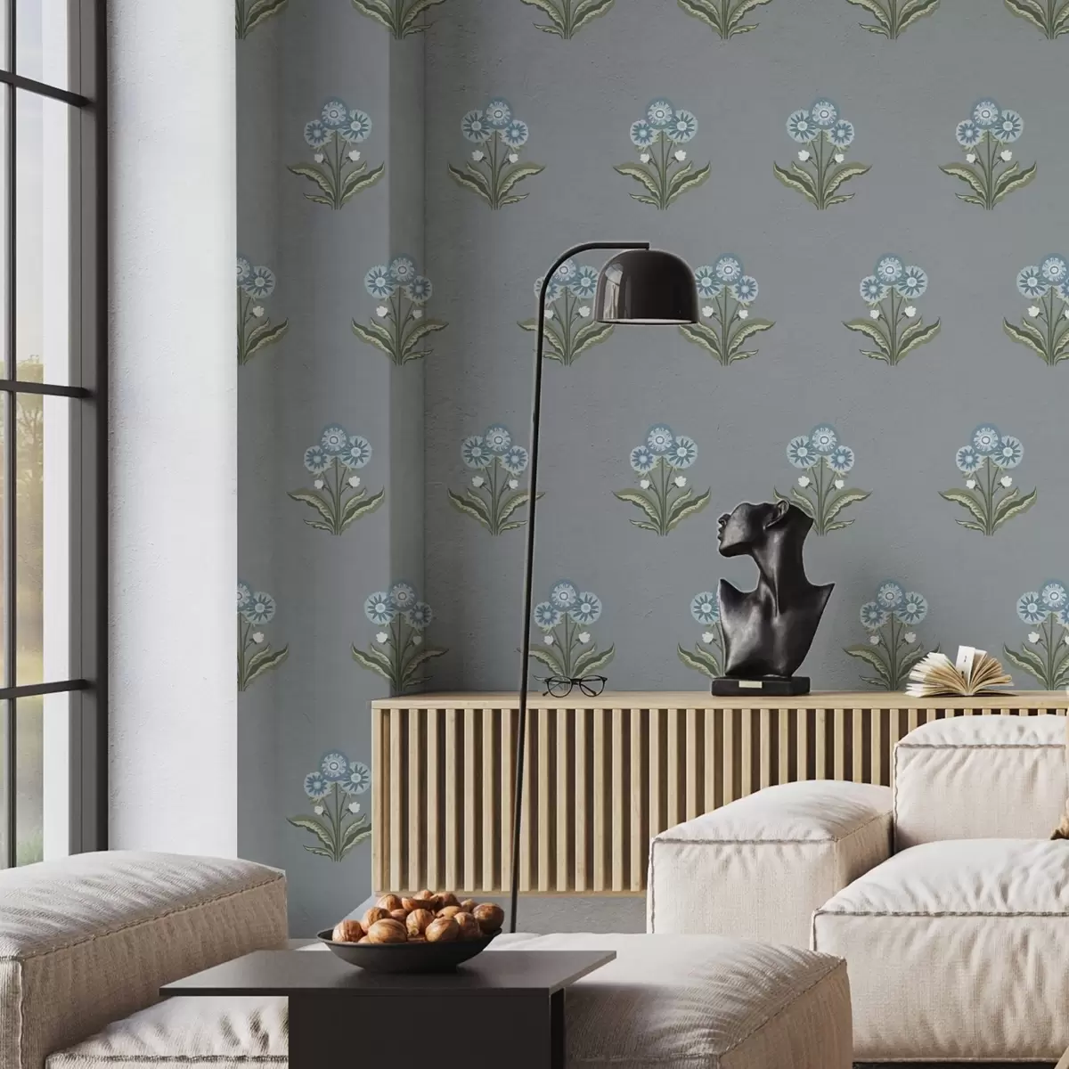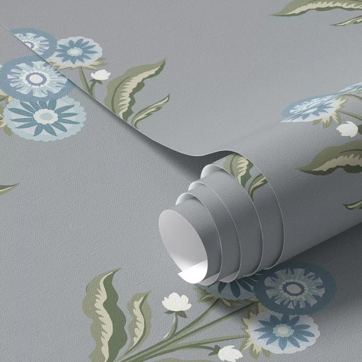 Papel tapiz Flores estilizadas sobre un fondo gris azulado, paleta de colores fríos Nr. a00494v1