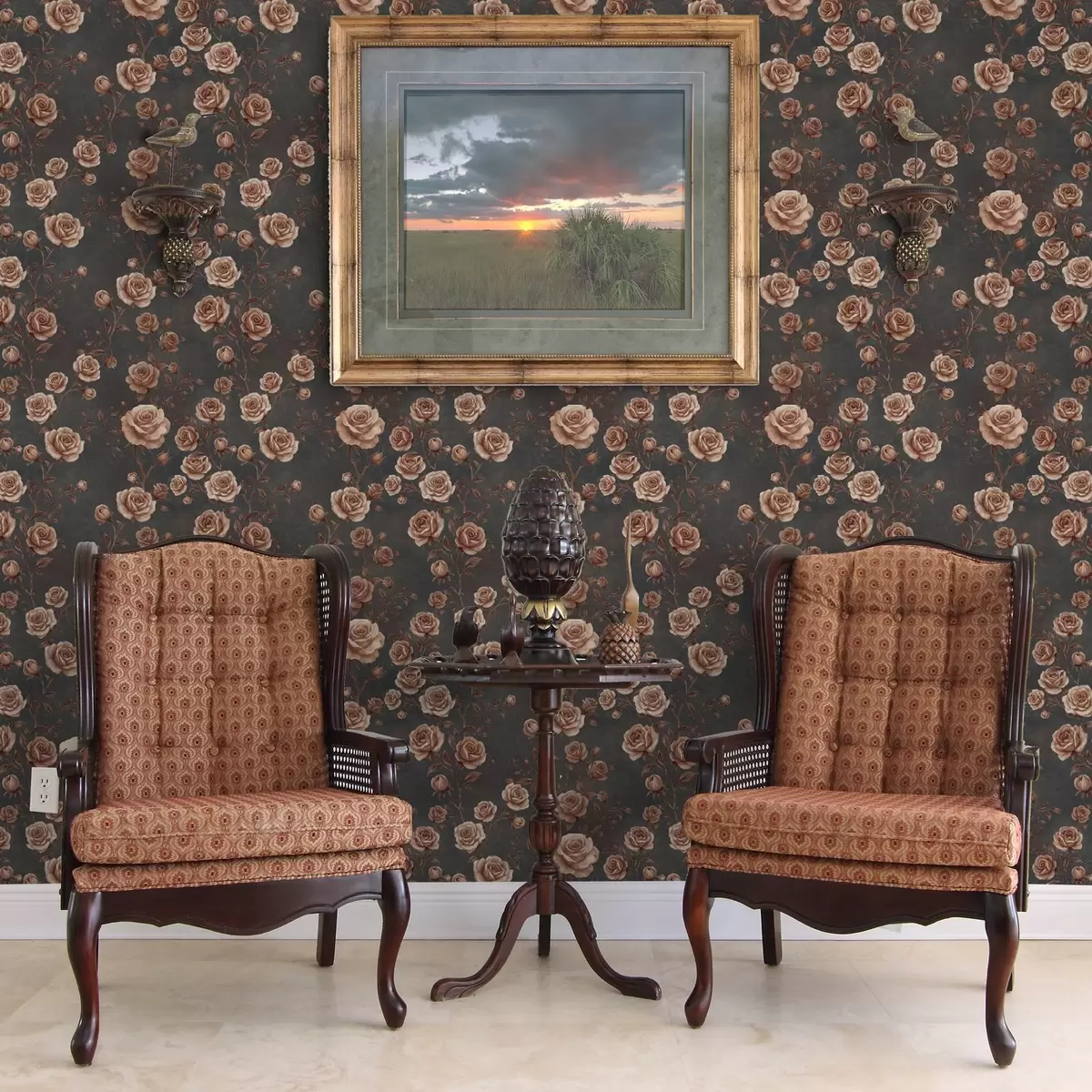 Papel tapiz Rosas vintage sobre fondo grafito, paleta terracota Nr. a00497v1